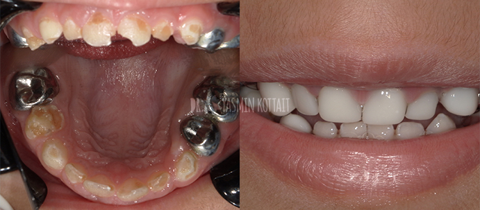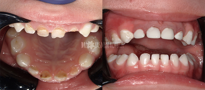 قد يكون التاج الأبيض هو الحل الأمثل عندما تكون أسنان طفلك متضررة بشدة أو بها تجويف كبير. تتناسب تيجاننا الملونة مع اللون الطبيعي لأسنان طفلك، مما يضمن نتيجة سلسة وممتعة من الناحية الجمالية. تعمل التيجان البيضاء على تقوية وحماية الأسنان، مما يسمح لطفلك بالمضغ والتحدث بشكل مريح. بفضل خبرتنا في طب أسنان الأطفال، نضمن أن تكون العملية مريحة وفعالة، مما يترك طفلك بابتسامة جميلة وصحية.